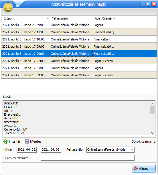 Ha az adatok megváltoztak és tudni szeretné, hogy ki módosította, akkor az Adatváltozás napló segítségével információt szerezhet róla.